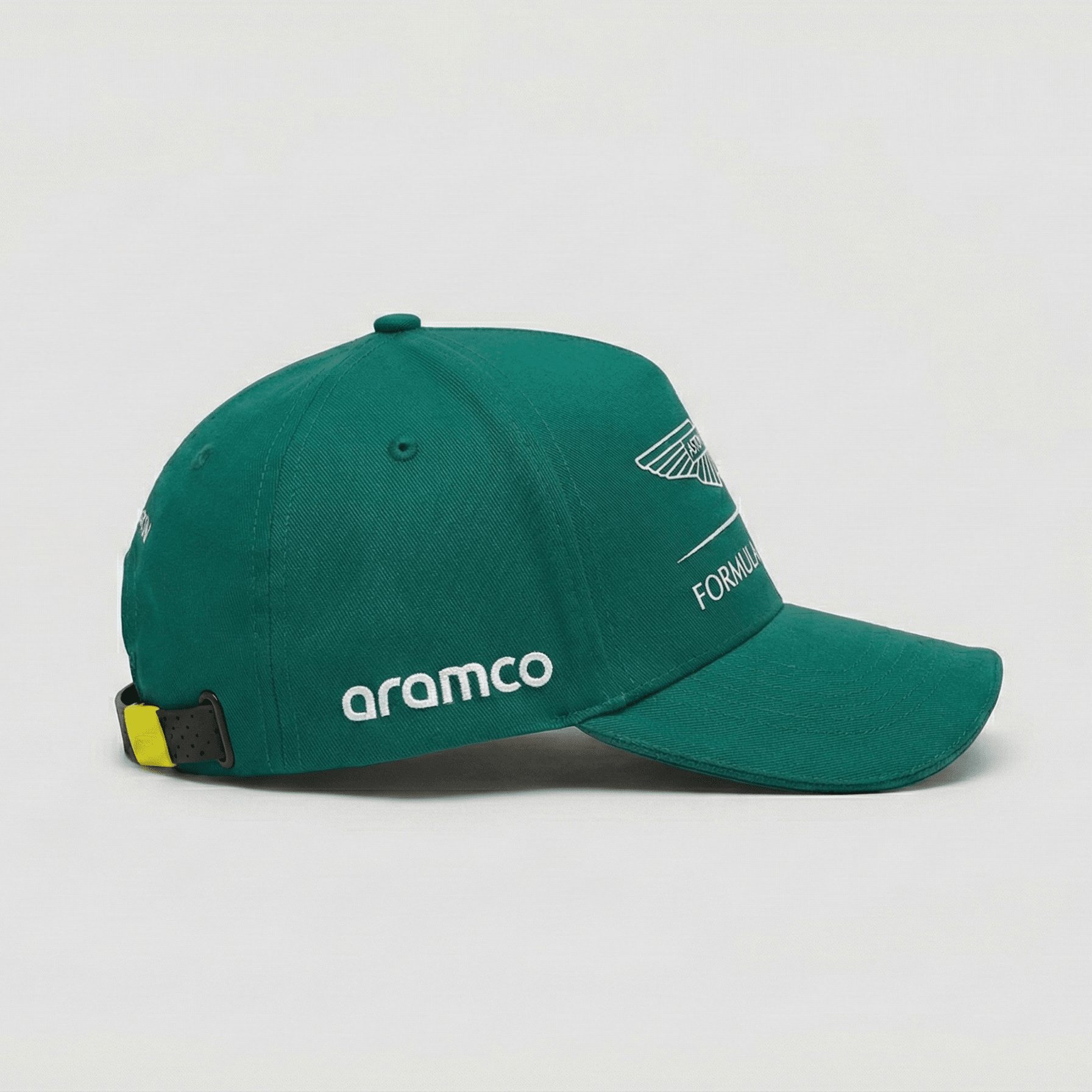The latest Aston Martin Formula One Official Team Cap – as worn by drivers Sebastian Vettel and Lance Stroll – embodies our mission with a fresh take on our striking attire. The Team Cap is an instantly recognizable item which delivers luxury fit and finishes and will help you complete your look.